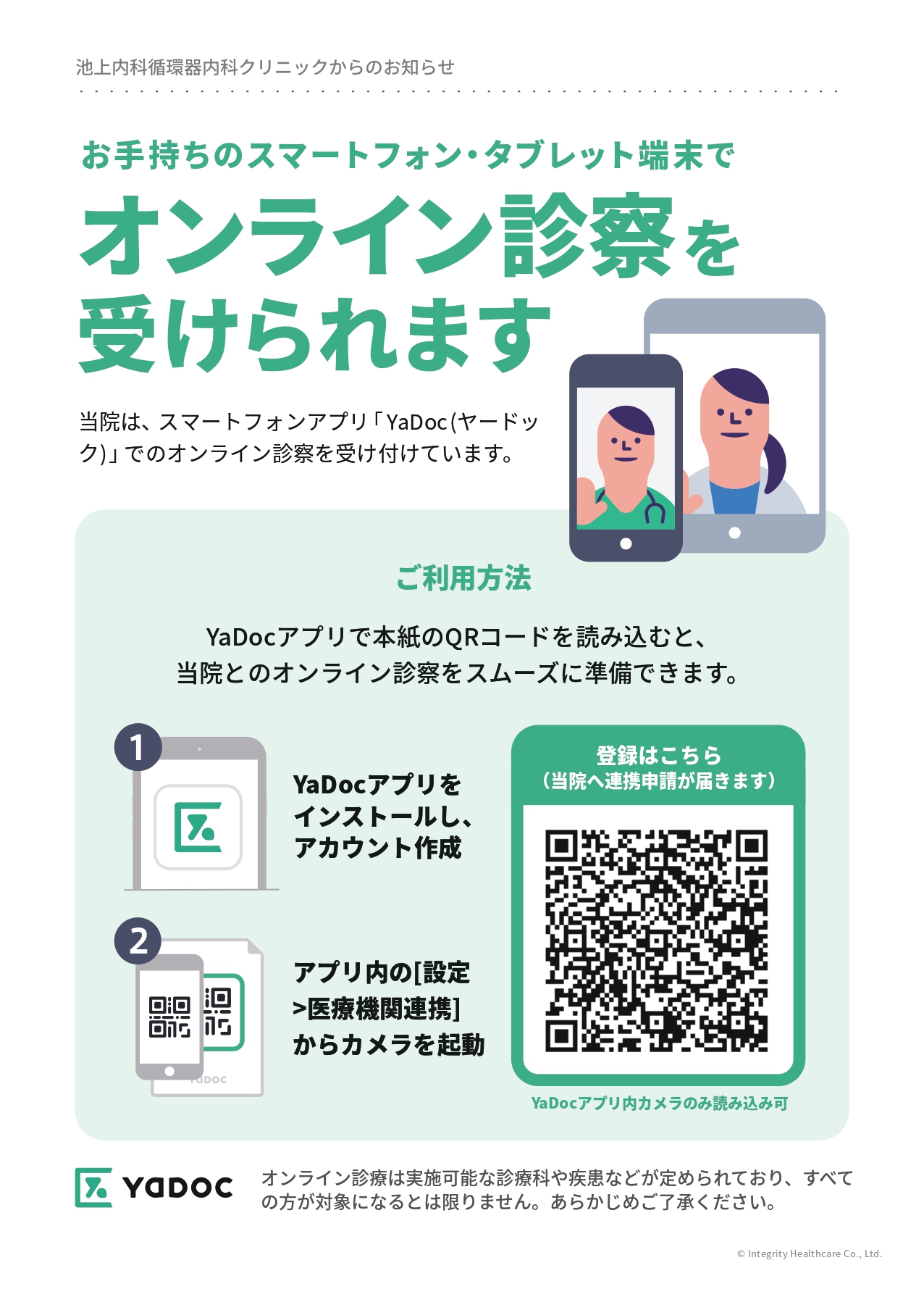 CPAP診療におけるオンライン診療はYaDocアプリを使用いたします。アプリの初期設定をはじめ使用方法等は以下の1~8の項目についてURLをご覧ください。